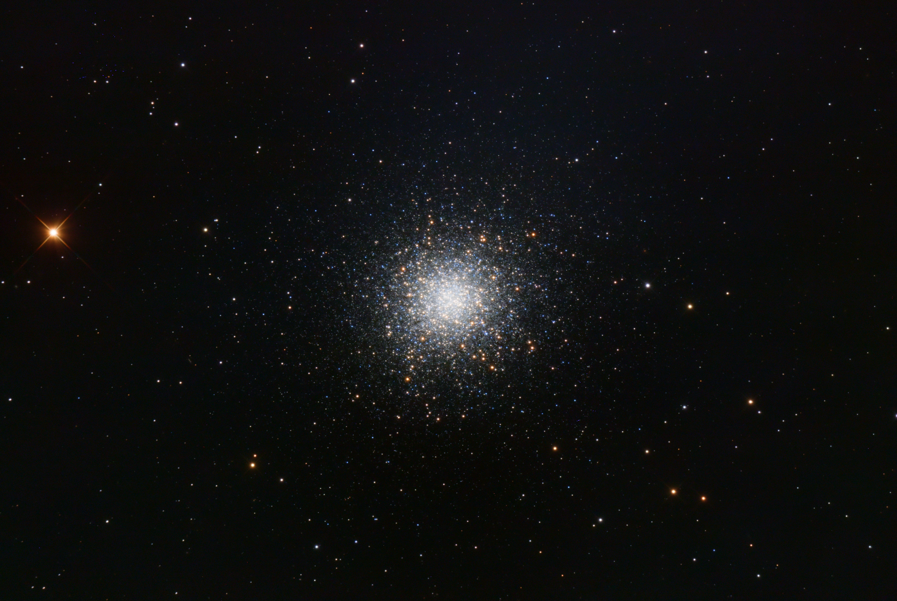 M 13 gehört zu den Größten von über 150 kugelförmigen Sternhaufen, die unsere Milchstraße im Abstand von 10.000 bis 100.000 Lj. umkreisen. Er besteht aus mehr als einer halben Million Sternen. Aufgenommen im Juli 2023. Belichtungszeit: 2,3 Stunden