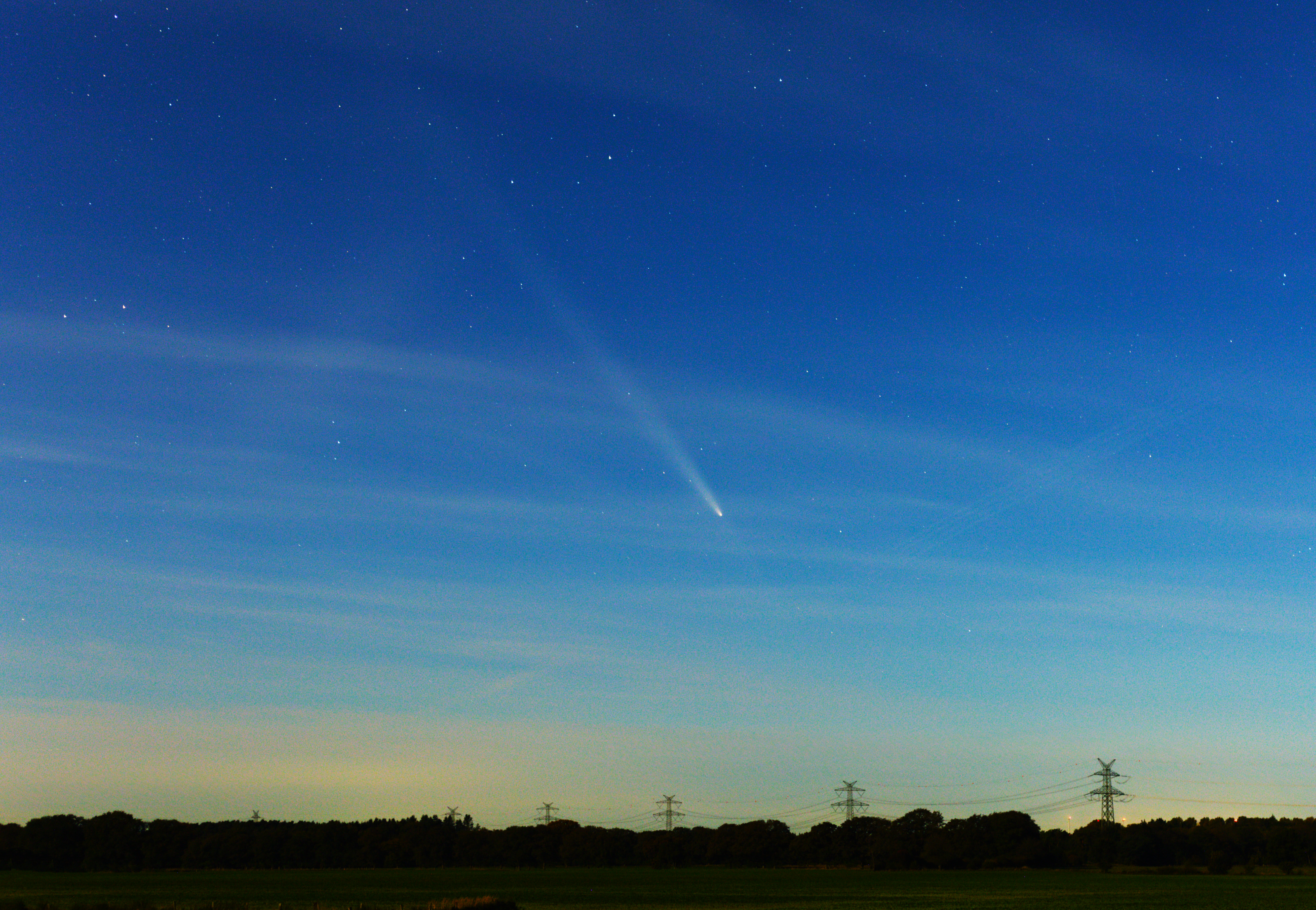 Eine Aufnahme des hellsten Kometen des Jahres 2024 kurz nach Sonnenuntergang mit einer Canon EOS RP DSLM-Kamera mit 50 mm-Objektiv.