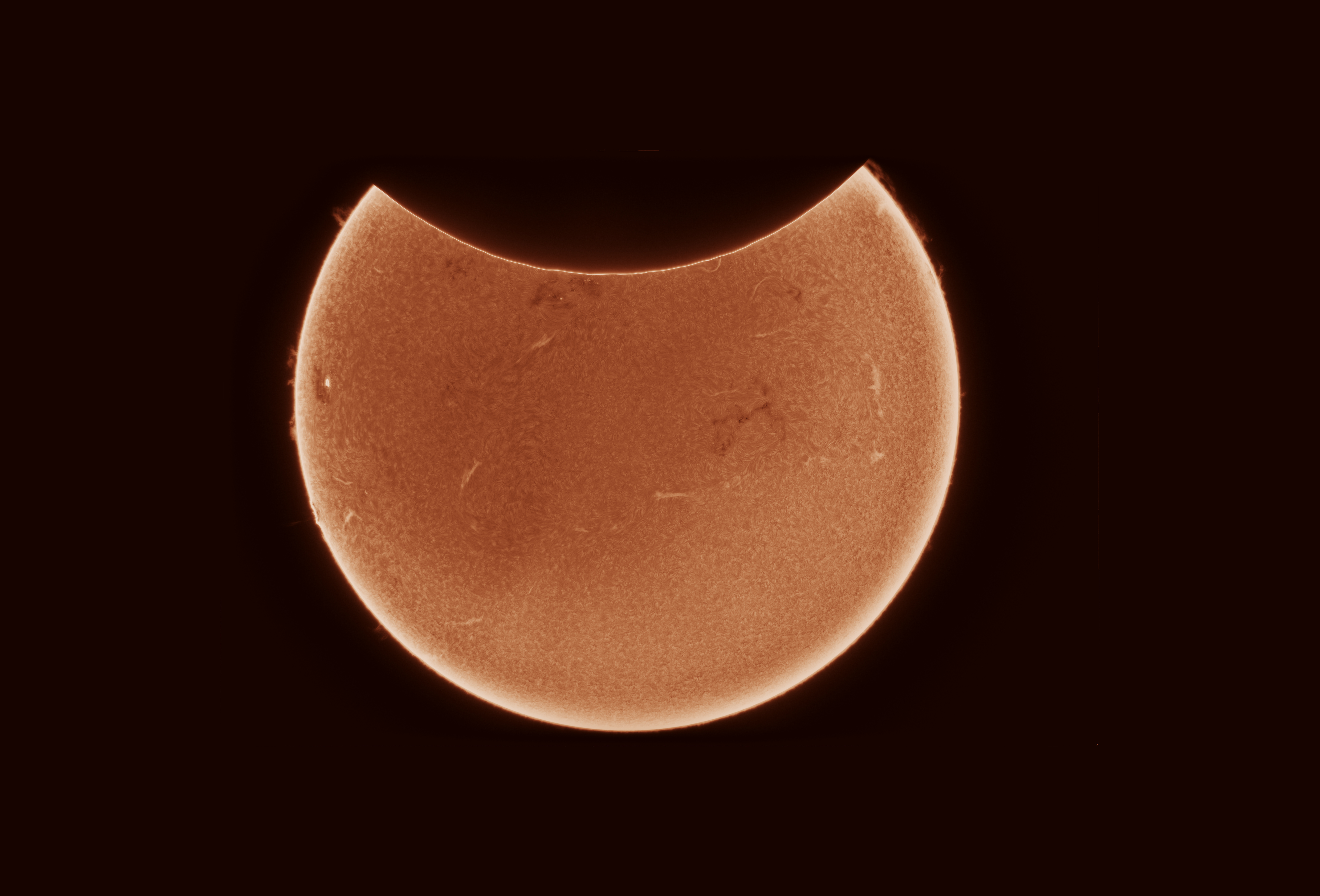 Die partielle Sonnenfinsternis vom 29.03.2025 im Ha-Licht aufgenommen.